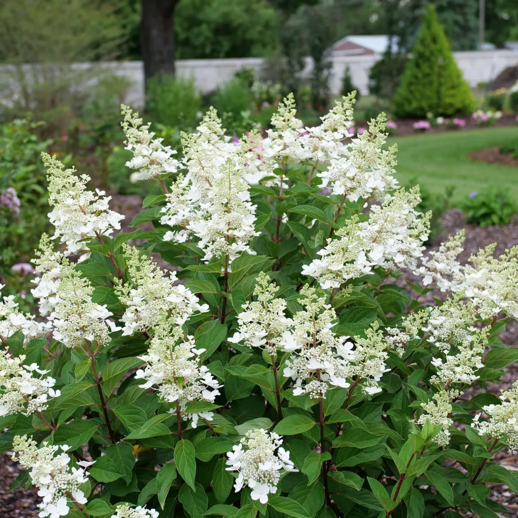 A Hydrangea paniculata ‘Pinky Winky’ egy igazán lenyűgöző bugás hortenzia, mely már nevét beváltva hódít fehérből rózsaszínbe hajló virágzataival. Ahogy a virágok sorban nyílnak, az újabb fürtök tiszta fehérrel kezdődnek, majd fokozatosan mély, lilás-rózsás árnyalatba váltanak – így egész nyáron át látványos színátmenetet alkotnak. A virágfejek impozáns mérete, akár 30–40 cm hosszúsága és erős, bordó szárai miatt nem hajlanak meg, még esőben sem.