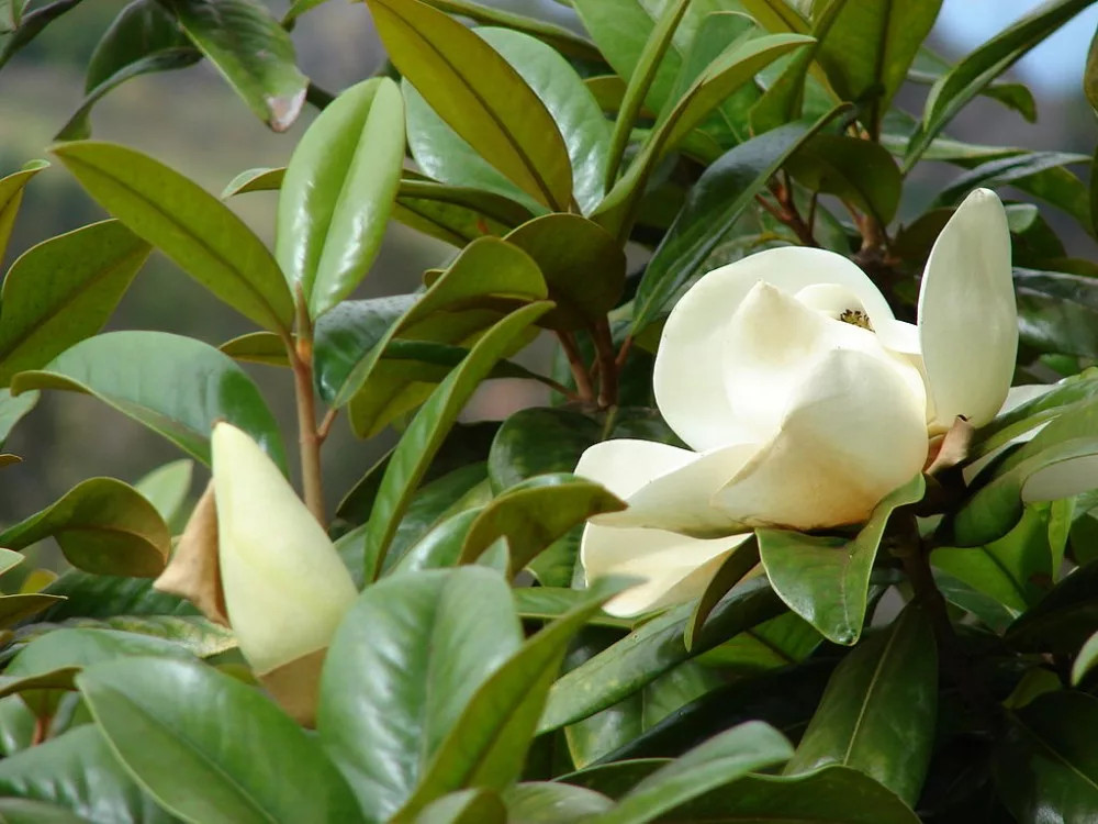 A Magnolia grandiflora az egyik legismertebb és legnemesebb magnóliafajta, amelyet gyakran neveznek örökzöld magnóliának. Ez a lenyűgöző díszfa eredetileg Észak-Amerika délkeleti területeiről származik, és méltán vált a kertek és parkok ékkövévé impozáns megjelenésével.